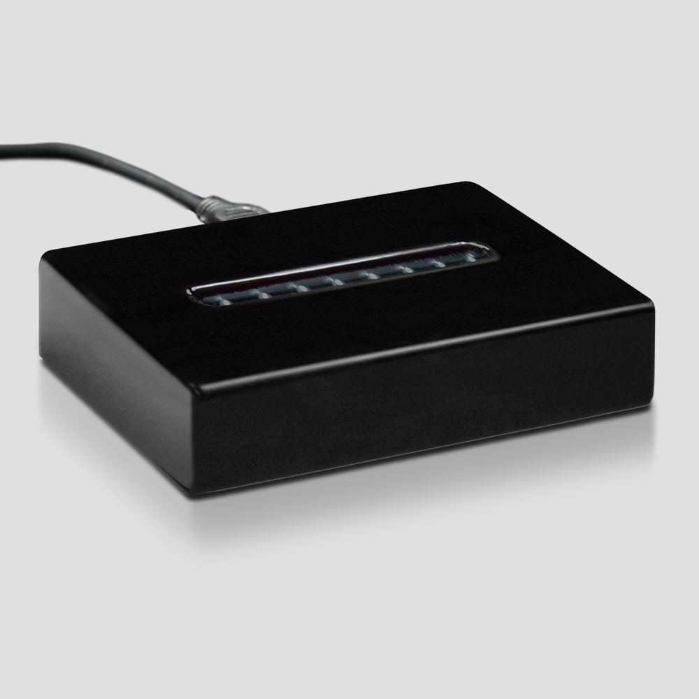 The Black Piano Finish Lighted Base is a dark black wood with a soft bevel. This base illuminates the gift or award using LED light bulbs.