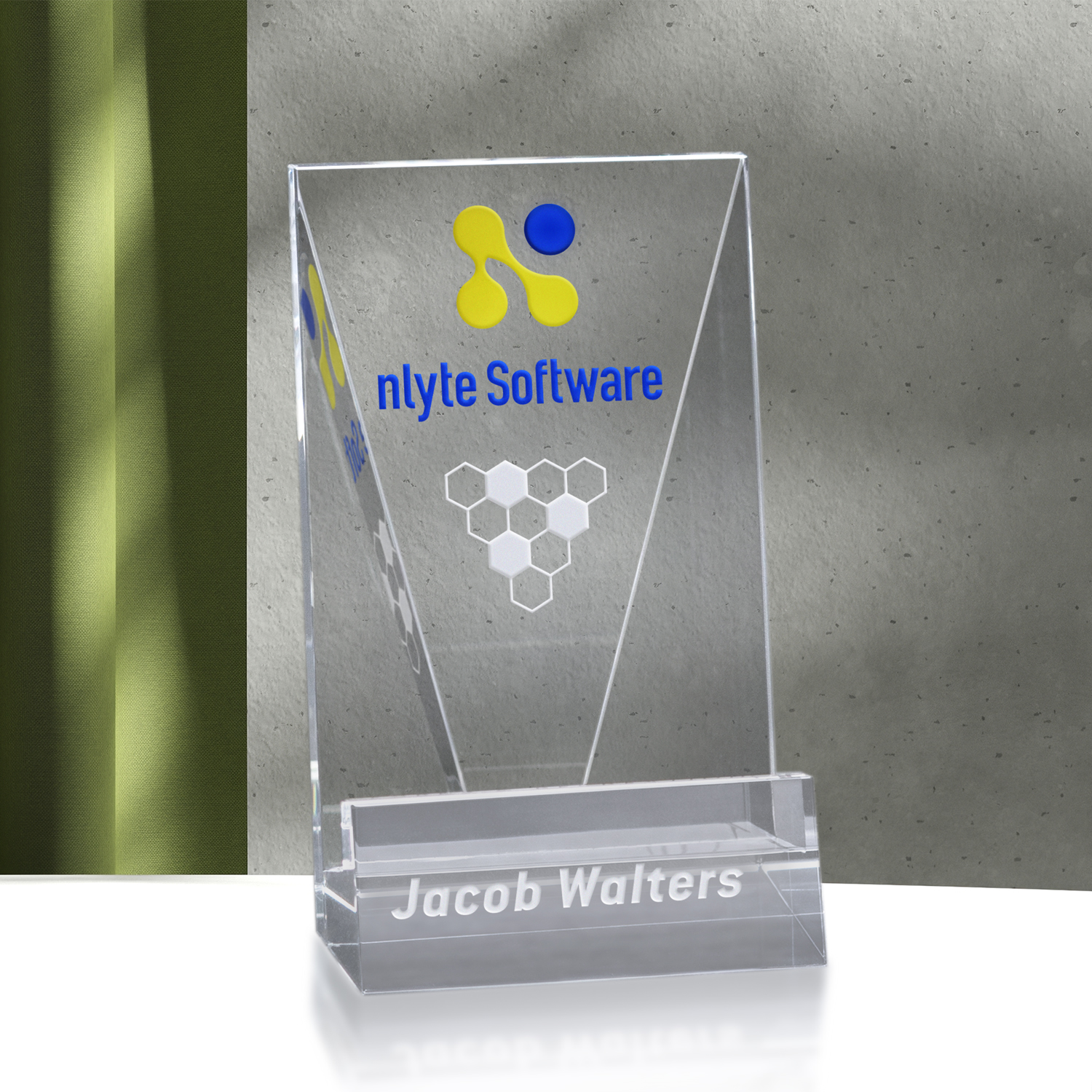 Use this award to hold your cell phone, prop up a few business cards, or place a meaningful photo on display for all to see. This award offers many different functions – and with a personalized message can also be used to honor a commendable recipient.