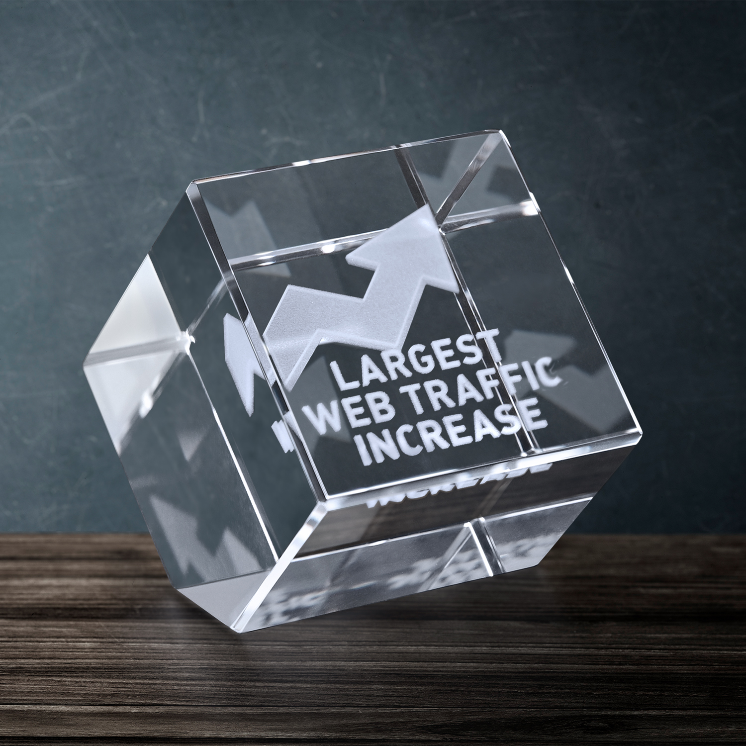 This many-sided cube gives multiple opportunities to personalize an award in a substantial way. Consider this award for a recognition event or as a giveaway.