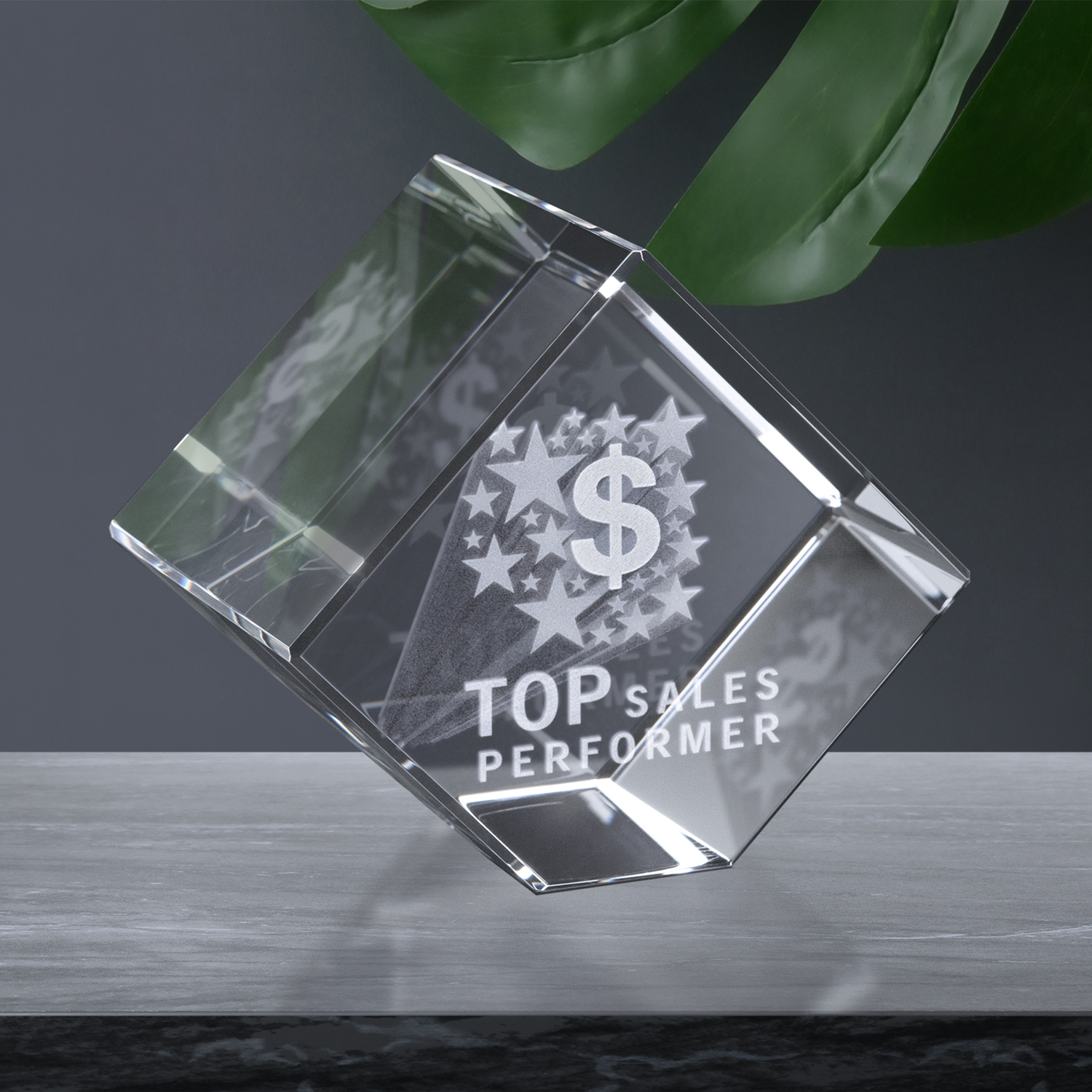 This many-sided cube gives many opportunities to personalize an award in a meaningful way. Consider this award for a recognition milestone or as a giveaway.