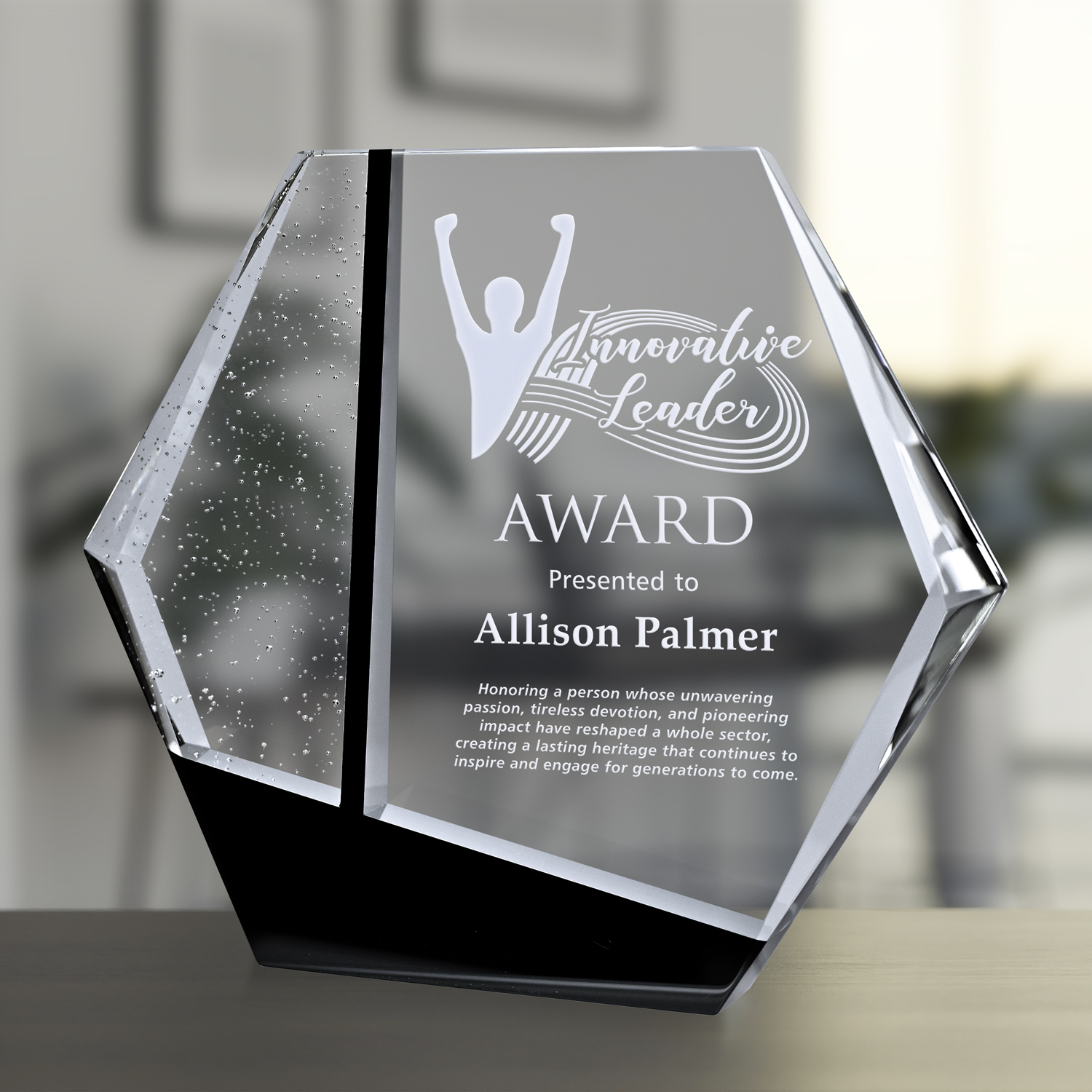 Nothing says “mission accomplished” like the Commander Award. This crystal award salutes the recipient for their leadership, vision, and ability to motivate teams to push past perceived limits. The bold geometric angles of the award demand attention and convey a sense of purpose. The Commander Award makes a striking statement on any desk or mantle. For the leader who aspires to greatness and demands greatness from others, this award is a physical embodiment of what can be achieved through determination and perseverance.