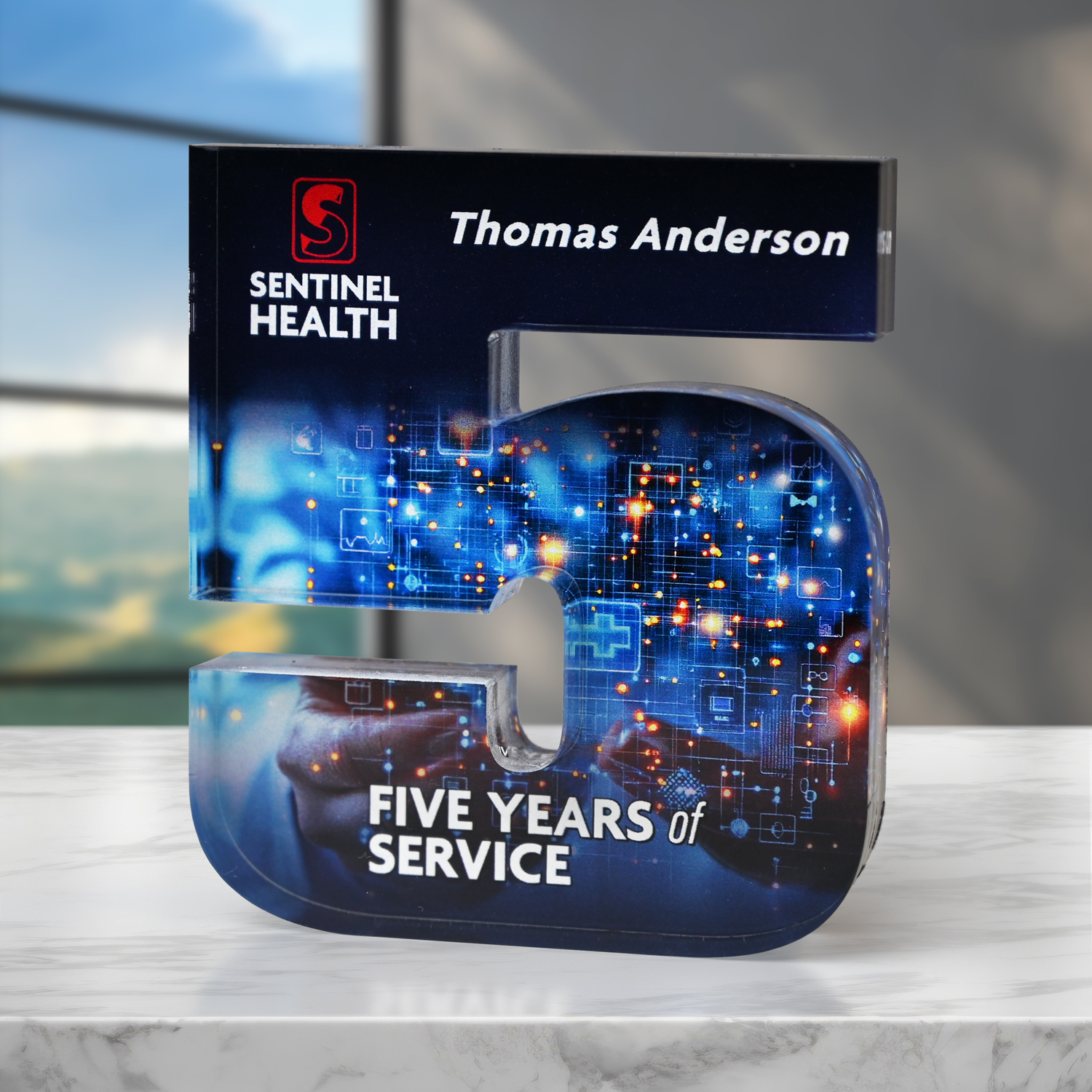 Recognize fith year milestone with these full-color acrylic awards. Each piece is precision-cut to embody the anniversary year, then finished with smooth, polished edges and a substantial weight that feels as impressive as it looks. A keepsake worthy of the years it represents.