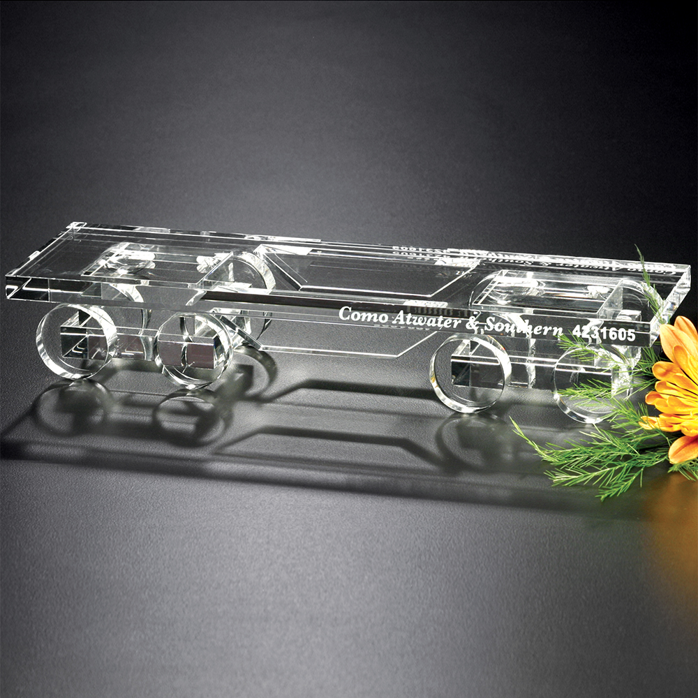 The flatcar is used to transport items that are too large to be enclosed, such as aircraft parts, lumber and slabs of steel. The Flatcar Train is an award that is made completely of optical crystal and emulates a real-life freight car perfectly.