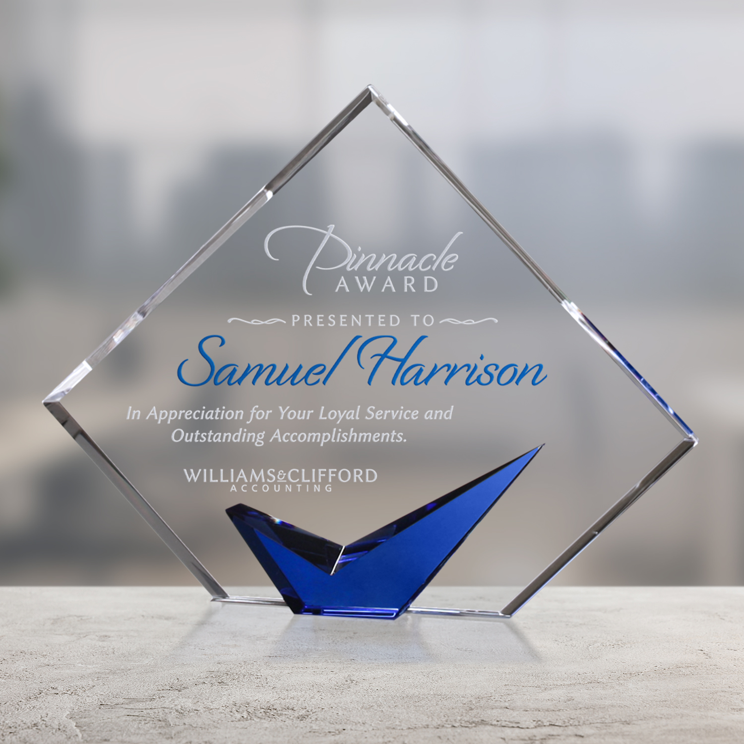 With ample space for a message of your choice, the Gala Deluxe Square is a simple yet graceful option for any recognition occasion. Choose from several different base accents to complete your award.