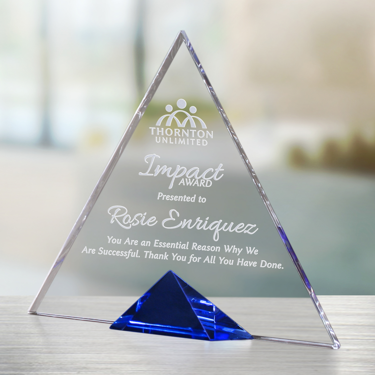 With ample space for a message of your choice, the Gala Triangle is a simple yet graceful option for any recognition occasion. Choose from several different base accents to complete your award.
