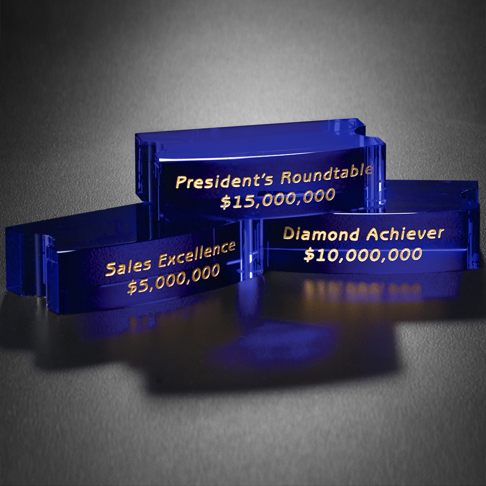 Blue blocks are designed to fit the Goal-Setter Awards perfectly. Each goal-setter block award holds a specific number of blue blocks as indicated in the product notes. Colorfill is included in the price of each block.