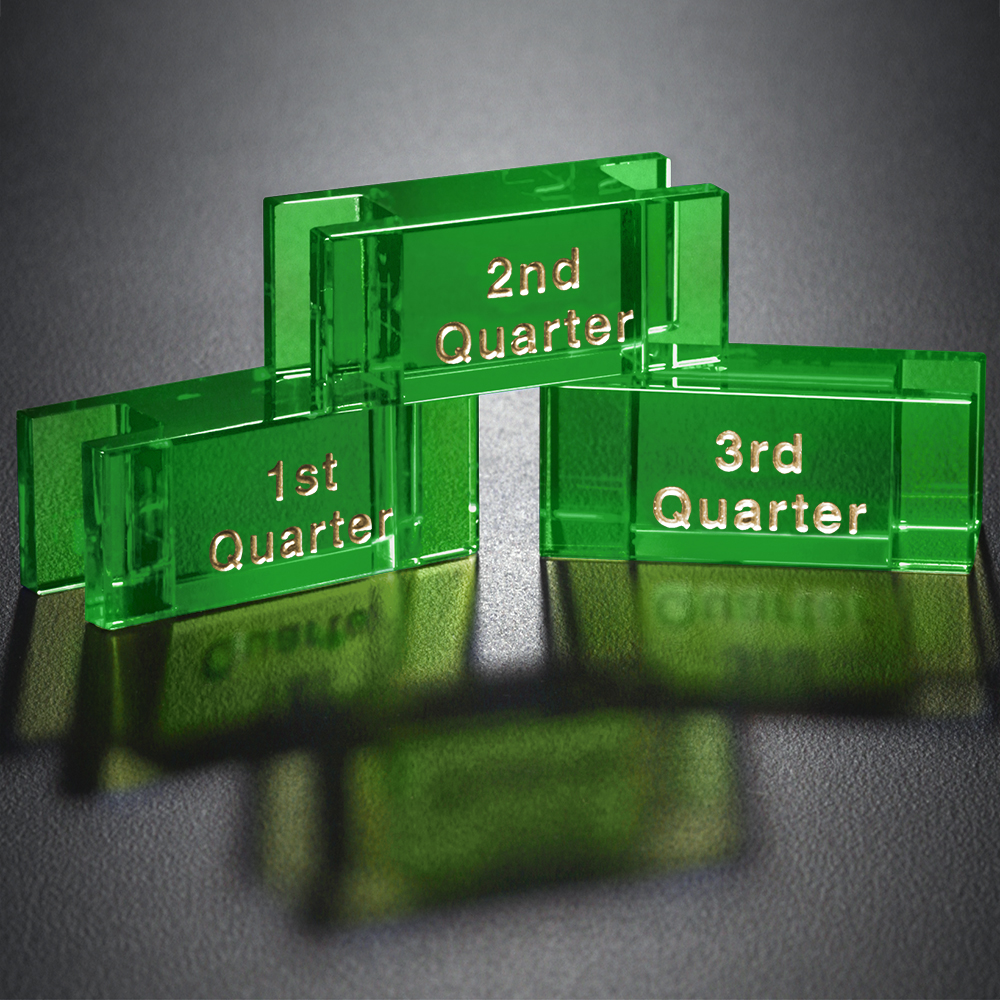 Green blocks are designed to fit the Goal-Setter Awards perfectly. Each goal-setter award holds a specific number of blocks as indicated in the product notes. Colorfill is included in the price of each block.