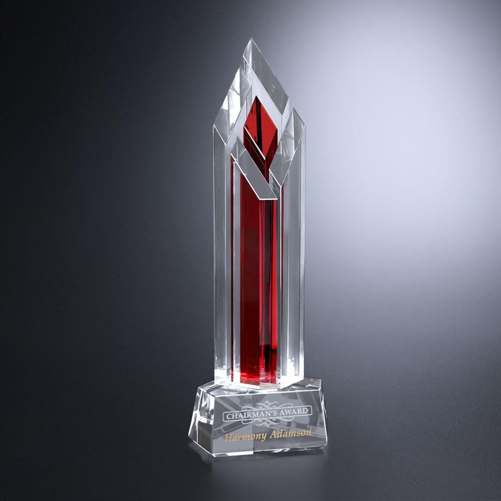 Four optically clear panels surround a red diamond pillar in the Halifax Ruby Award. This spectacular award doesn’t settle, just like your recipient!