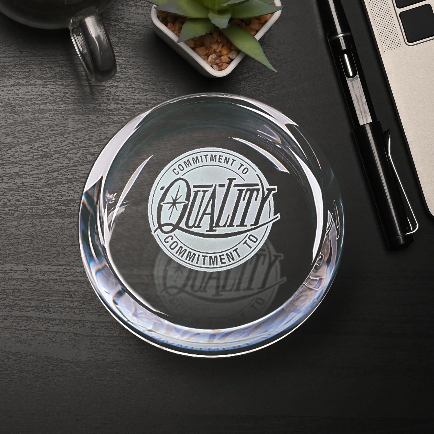 Magnify a logo or message by etching on the bottom of this crystal dome.
