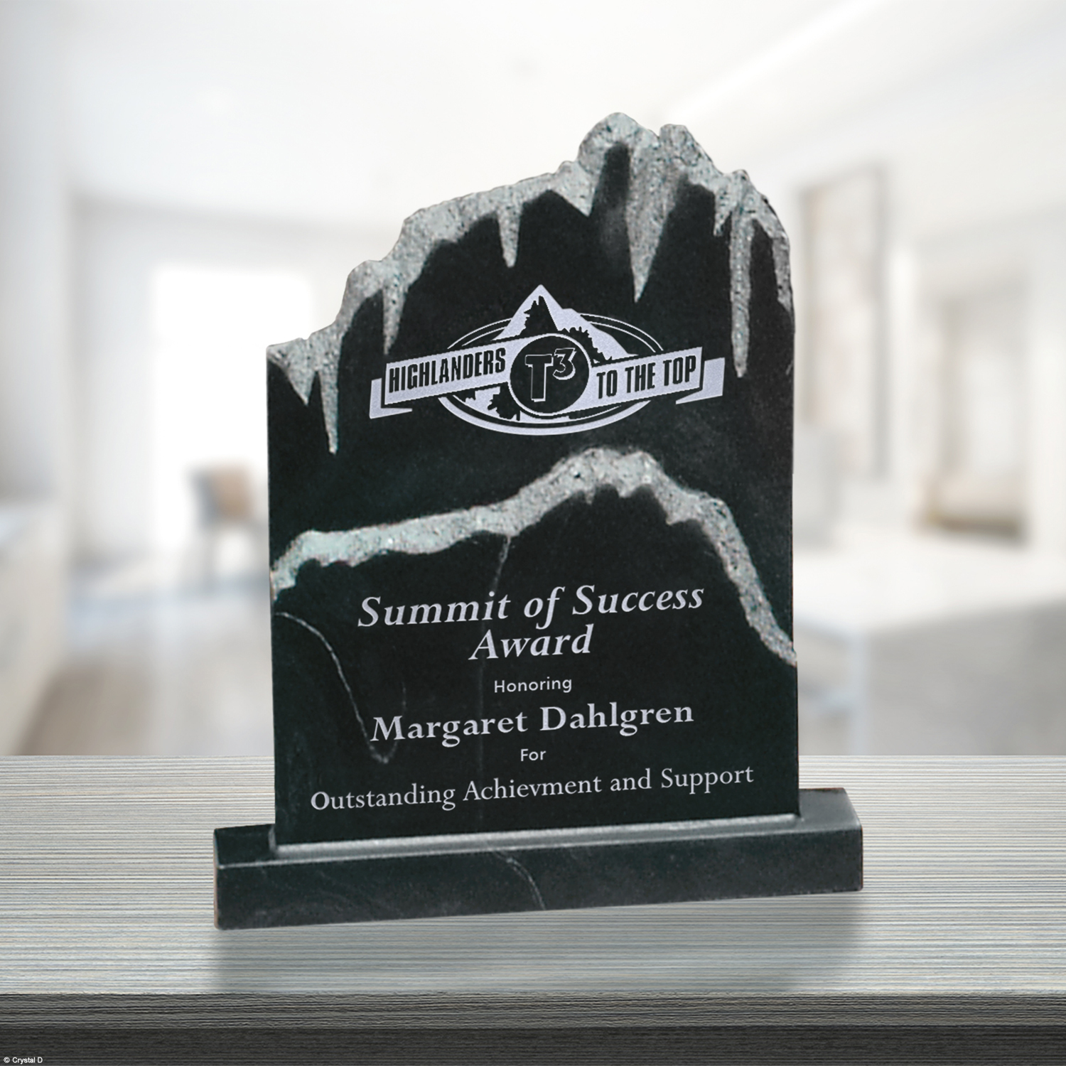 The Shasta Peak stone award symbolizes the climb to success. Each award includes two imprint areas and two imprint colors.