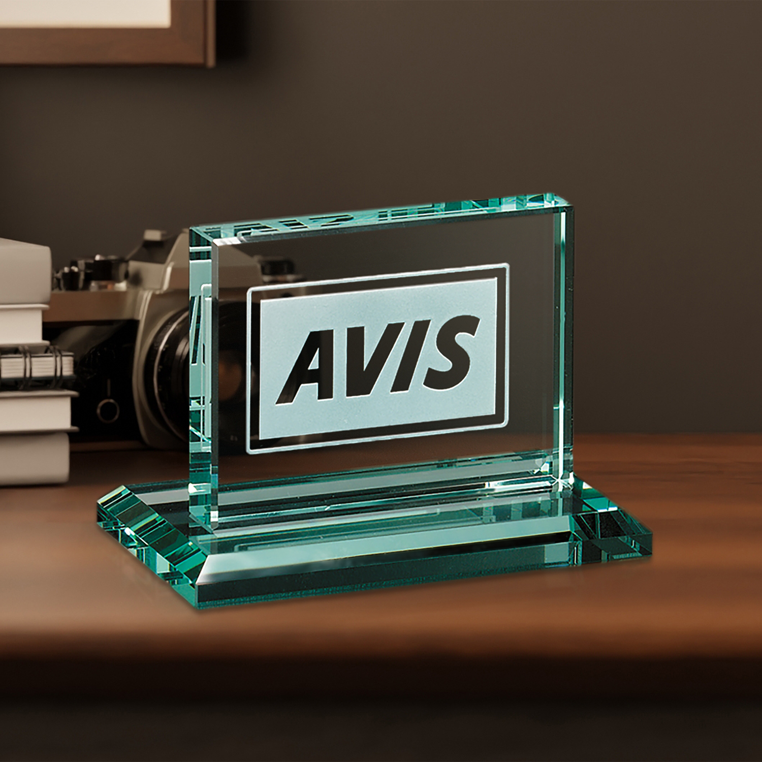 The sparkling jade color in these crystal rectangles accents a company name, logo or message. This jade crystal Huntington Rectangle award stands on a beveled jade crystal base.