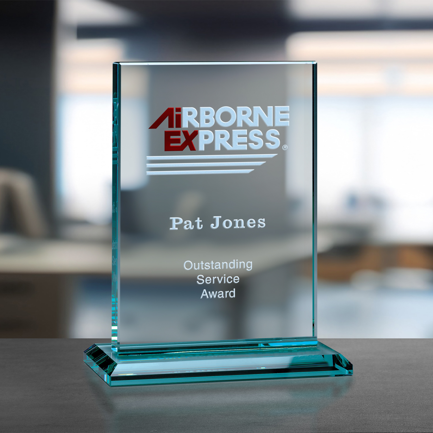 Accentuate a company name, logo or message with this contemporary jade crystal Vanderbilt Rectangle award.
