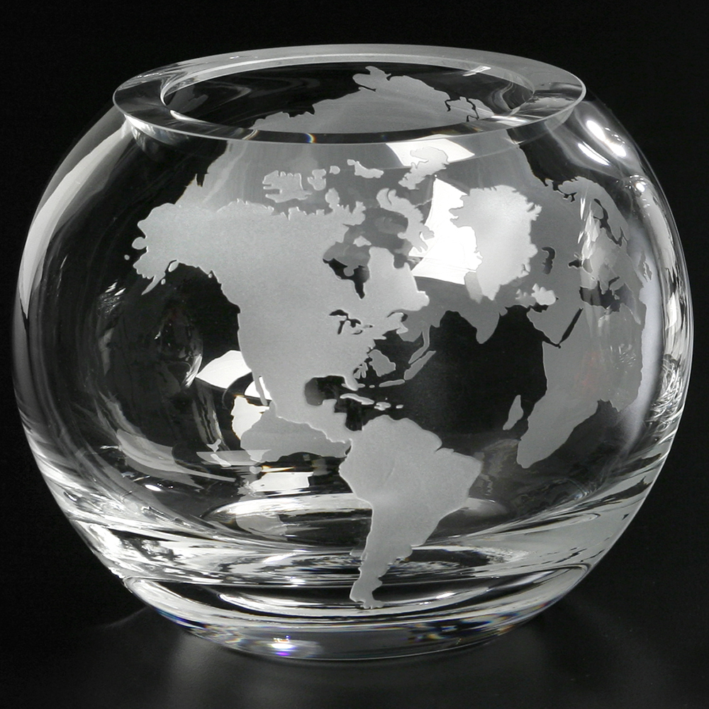 Deeply etched continents encircle these hand-blown crystal bowl trophies. Create a world class impression with a magnificent bowl trophy.