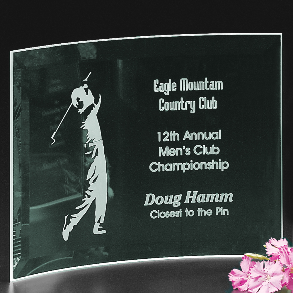 A corporate logo or inscription will be the prominent feature, deeply etched on these simply-styled beveled jade crescent awards.