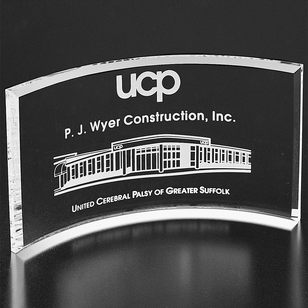 Elegantly beveled edges compliment the graceful curves of this prestigious starfire crystal award.