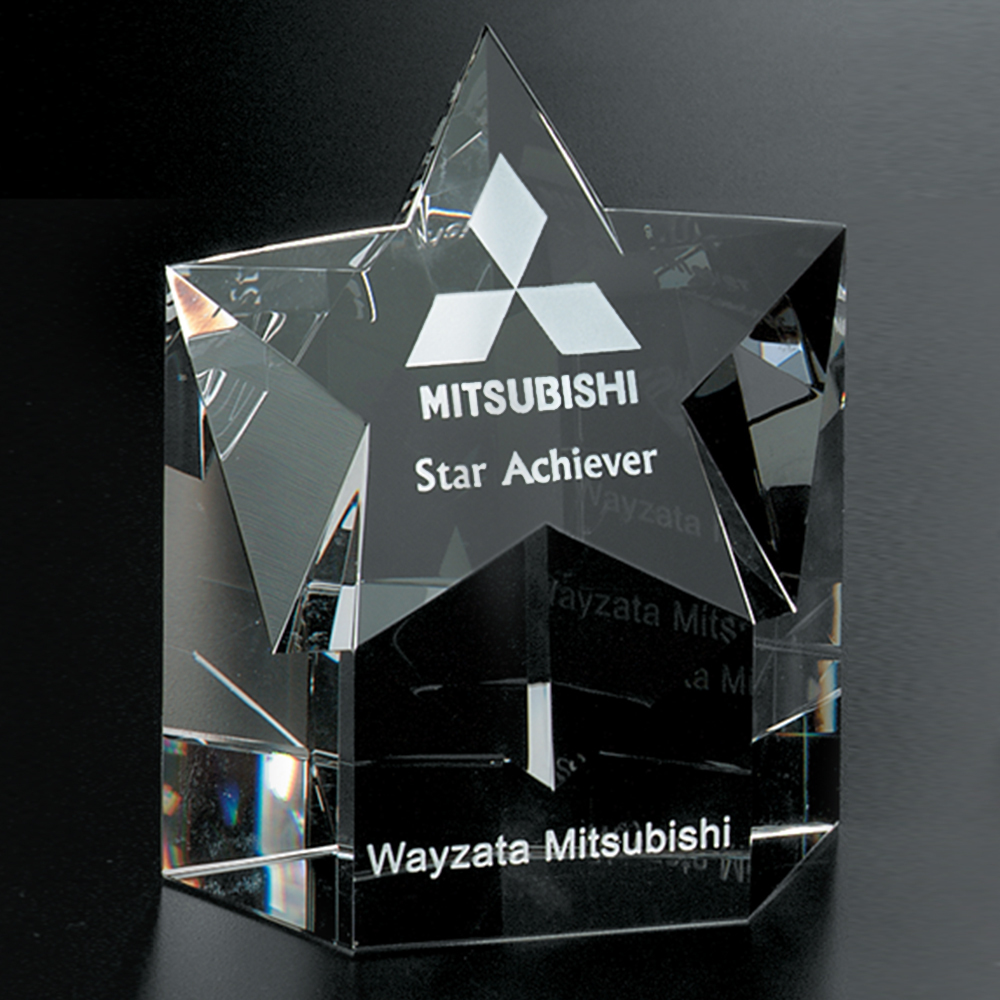 The crystal Mega Star award features a beautifully handcrafted optically perfect crystal pentagon with a faceted star on the top. The fantastic highlights make the Mega Star an eye-catching, sophisticated award.