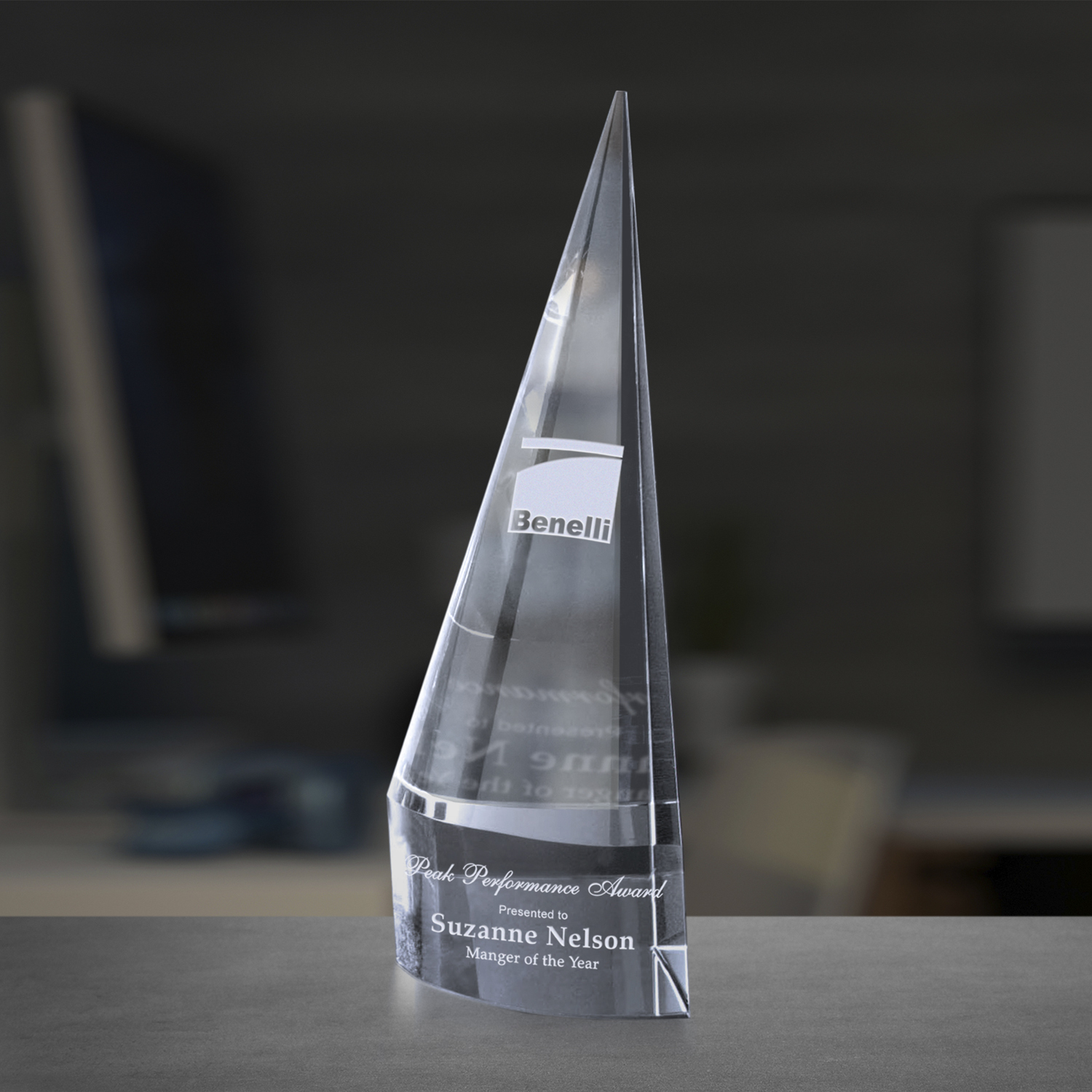 Graceful curves and optically perfect crystal make this exclusive design the ideal award to honor peak performance.
