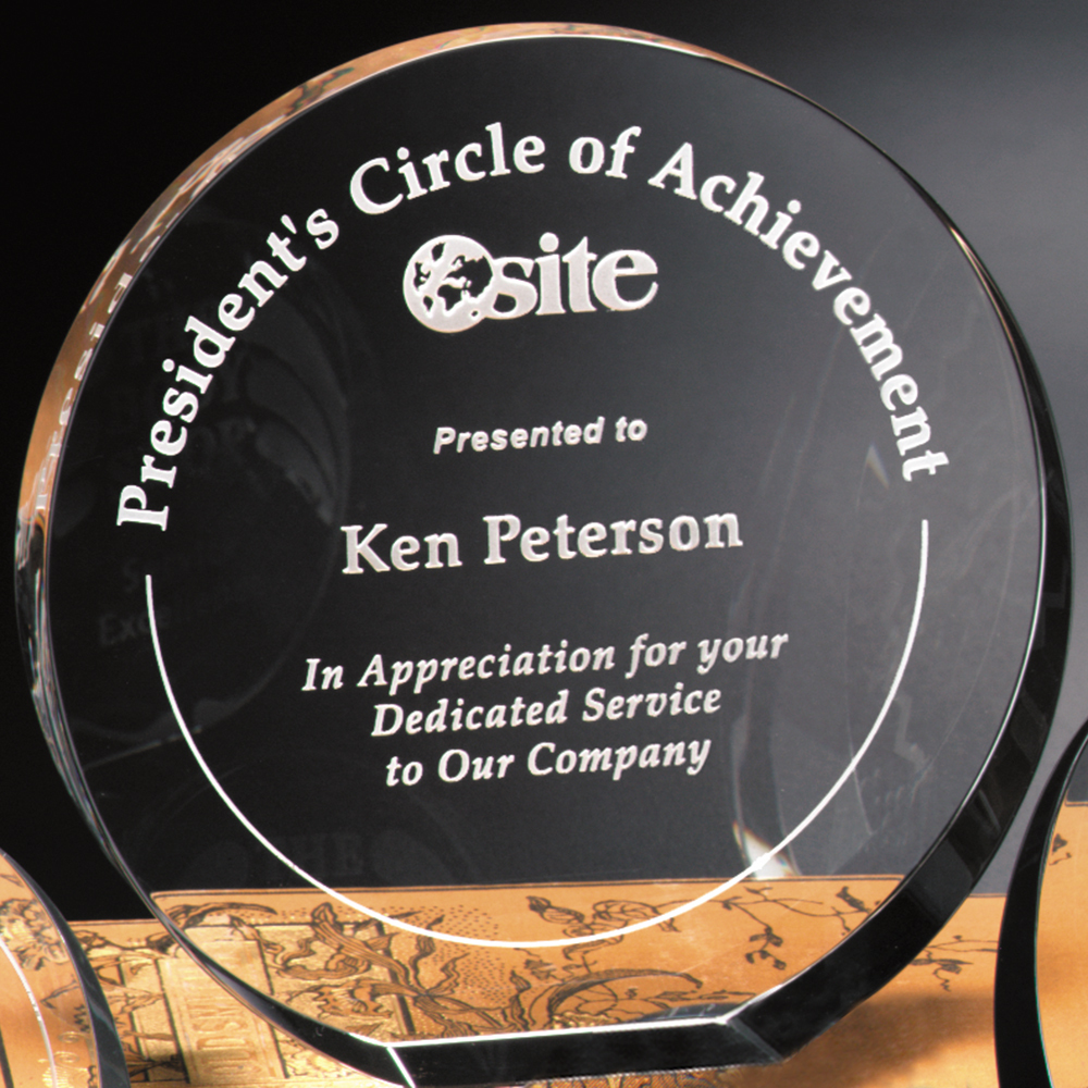 Brilliantly tapered, optically perfect crystal circles are ideal awards to compliment any desk or shelf.