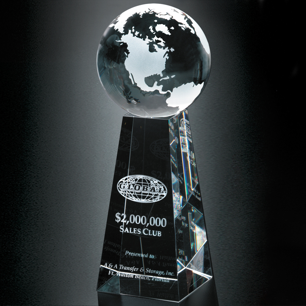A flawless, tapered, optical crystal base topped with an equally flawless crystal globe, make this award perfect for any recognition event!