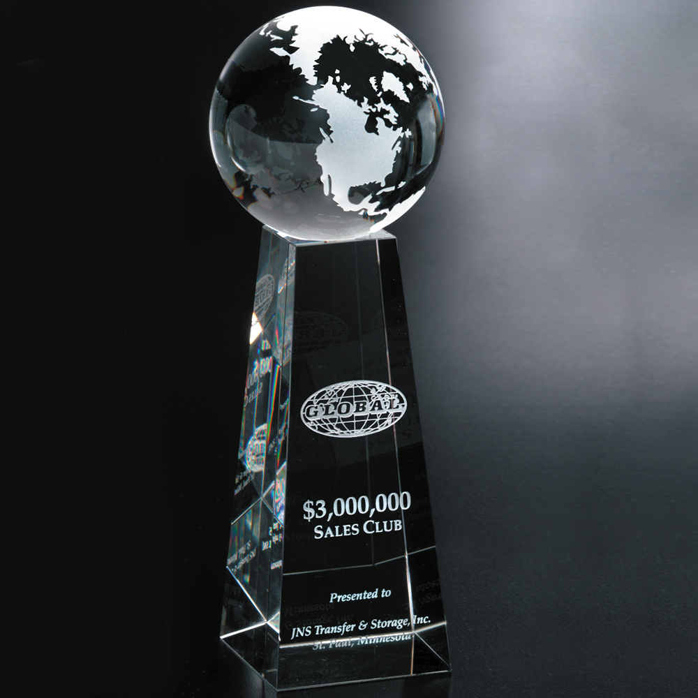 A flawless, tapered, optical crystal base topped with an equally flawless crystal globe, make this award perfect for any recognition event!