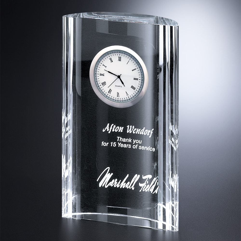 This stunning and dramatic timepiece will make a lasting impression. This exclusive award is the ultimate in brilliance that comes from optically clear crystal.