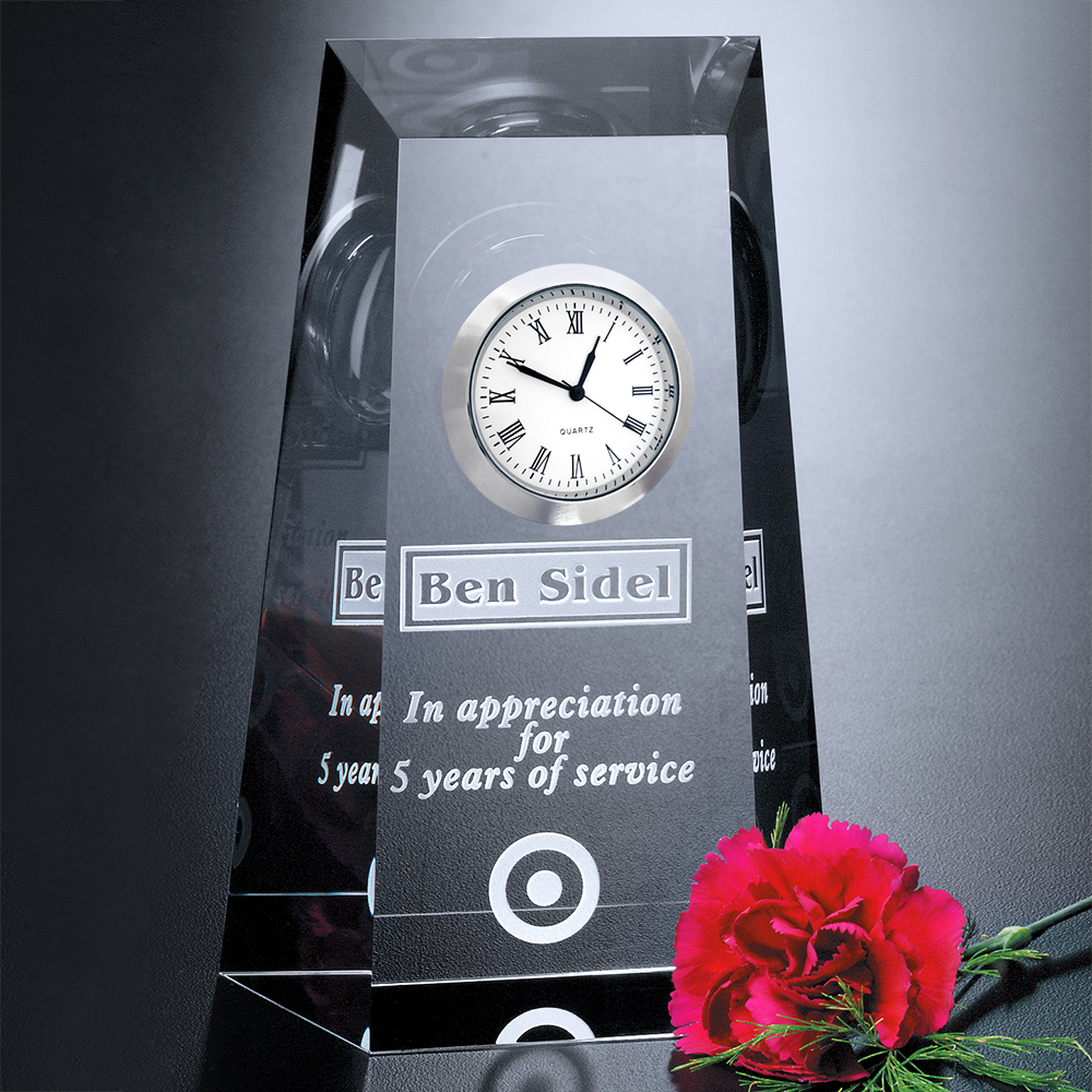 The Westchester Crystal Clock is an exclusive design and a timeless treasure. Reward the most deserving recipients with this beautiful crystal clock.