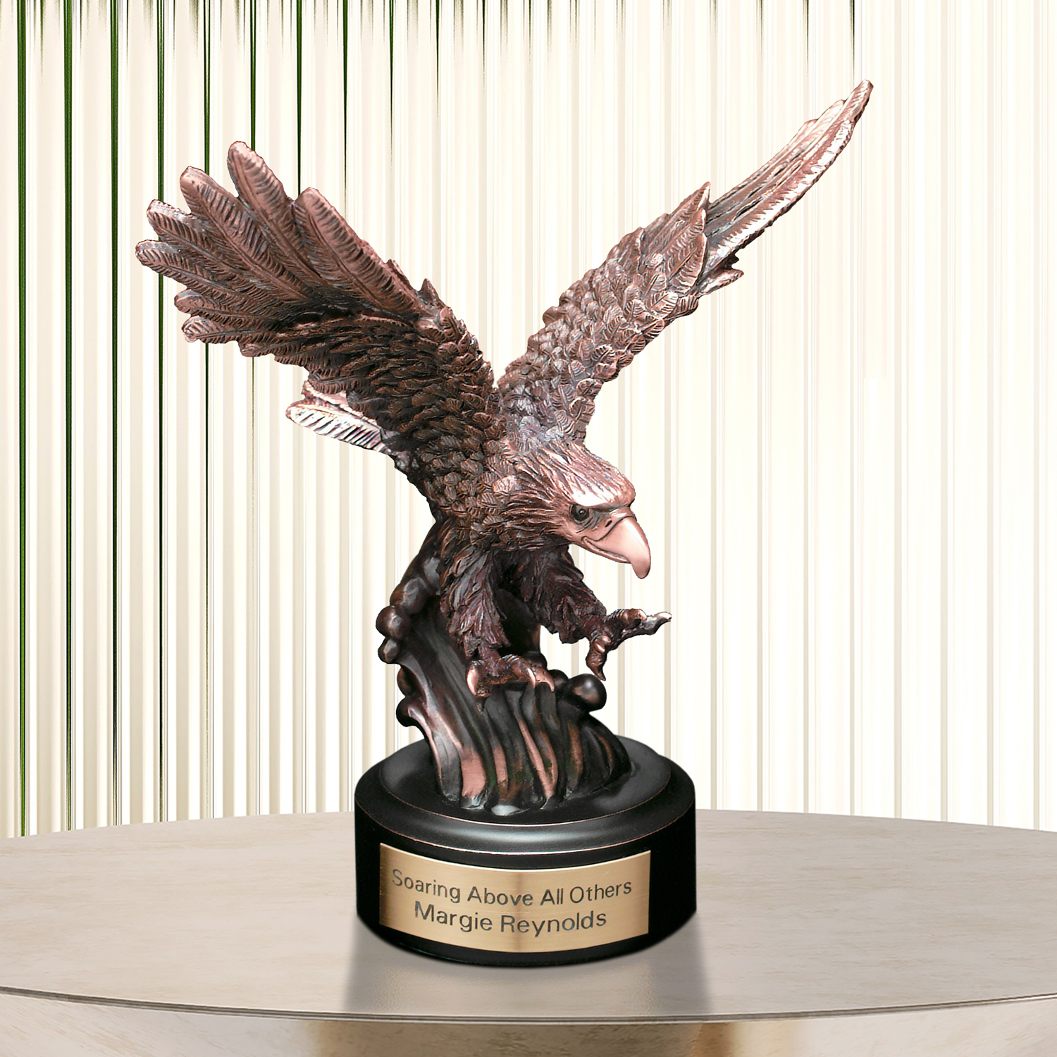 This eagle is mounted on a strong base to symbolize the eagle’s courage, strength and power.