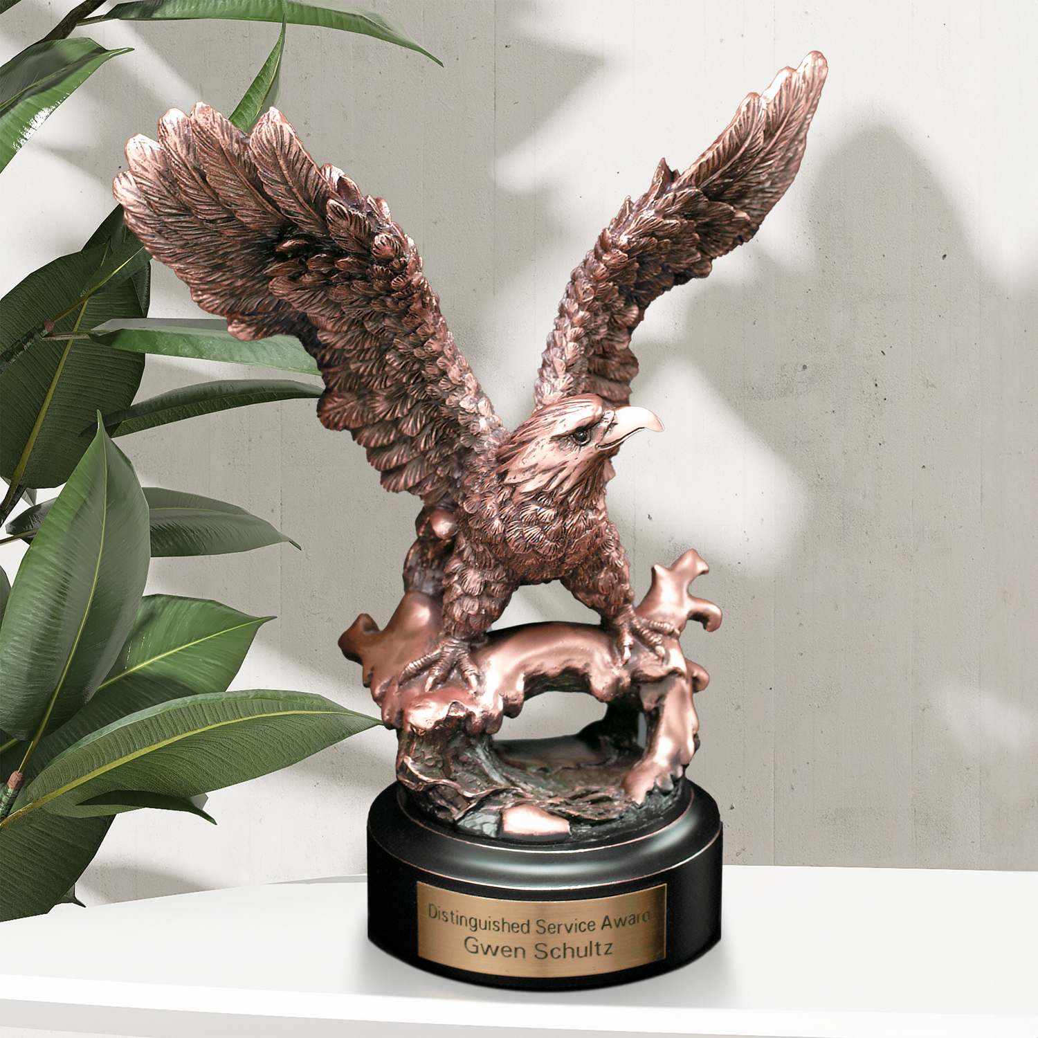 This eagle is mounted on a strong base to symbolize the eagle’s courage, strength and power.