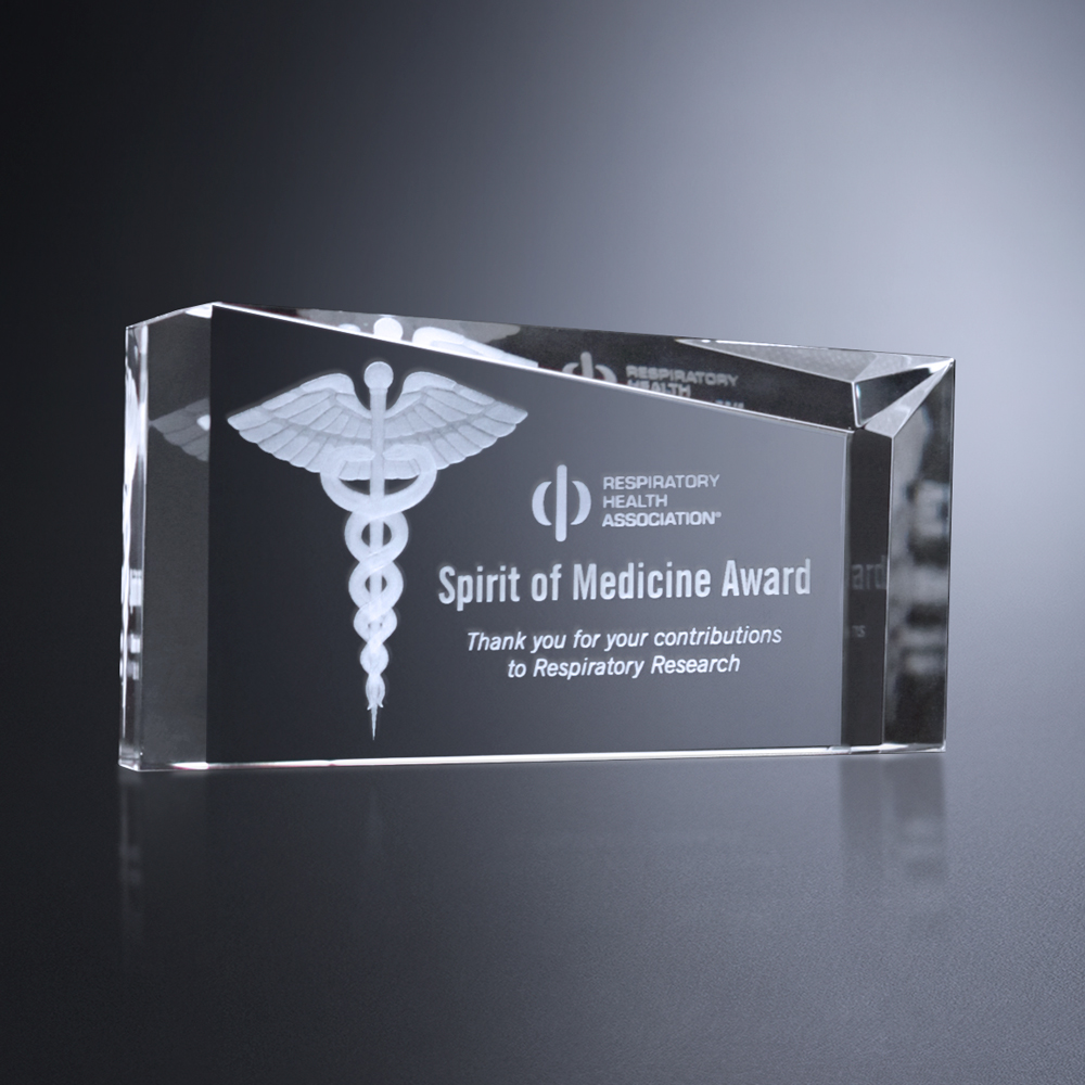 Available in three sizes, the Norfolk Wedge is optimal for celebrating a new product launch or thanking donors for their contributions. The angled trapezoid front and the deep bevels give this award an air of sophistication.