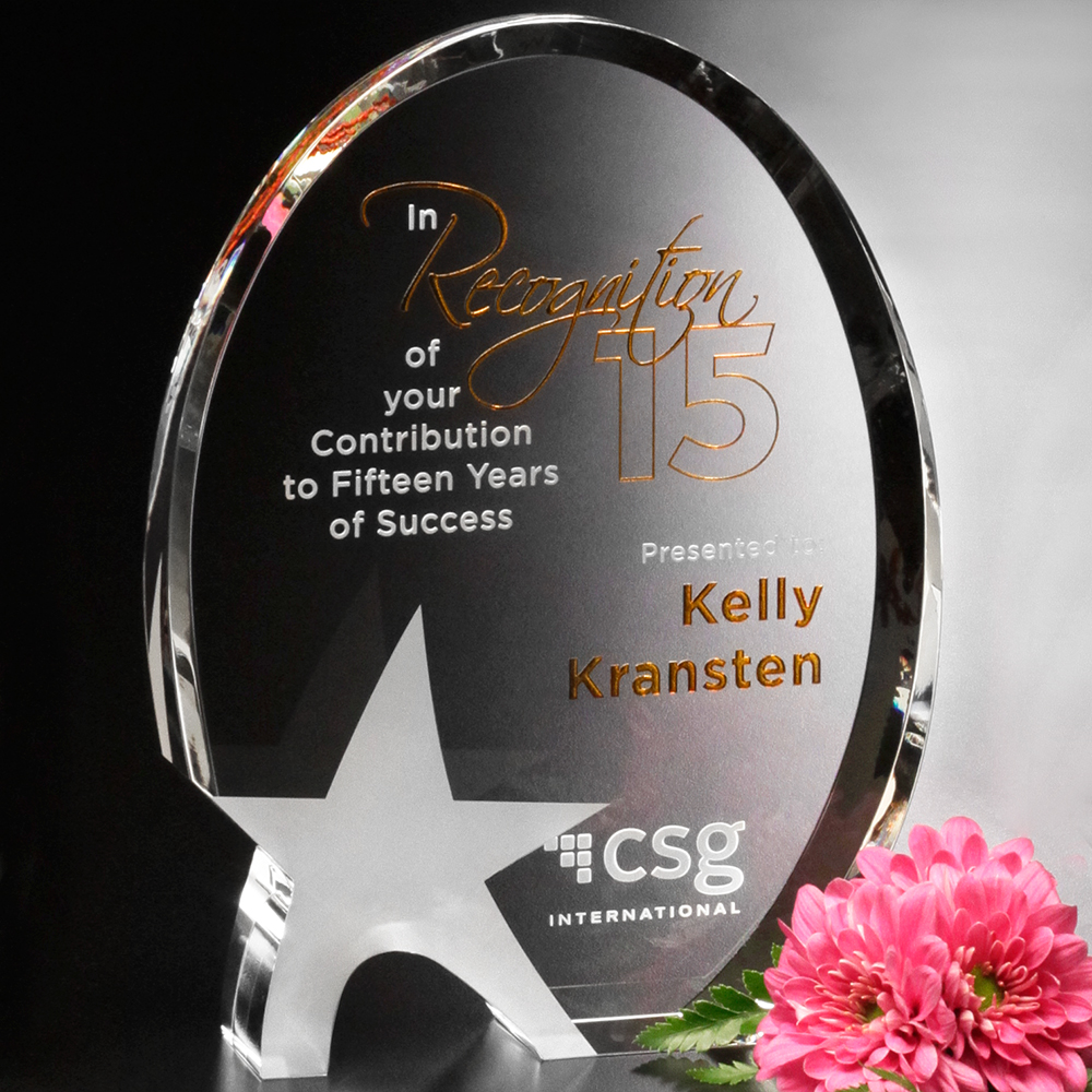 The Oval Star showcases its five points subtly. This lovely award is totally flawless and crystal clear; it can be customized with a special message or imprint to relate to any recognition occasion honoring a job well done.