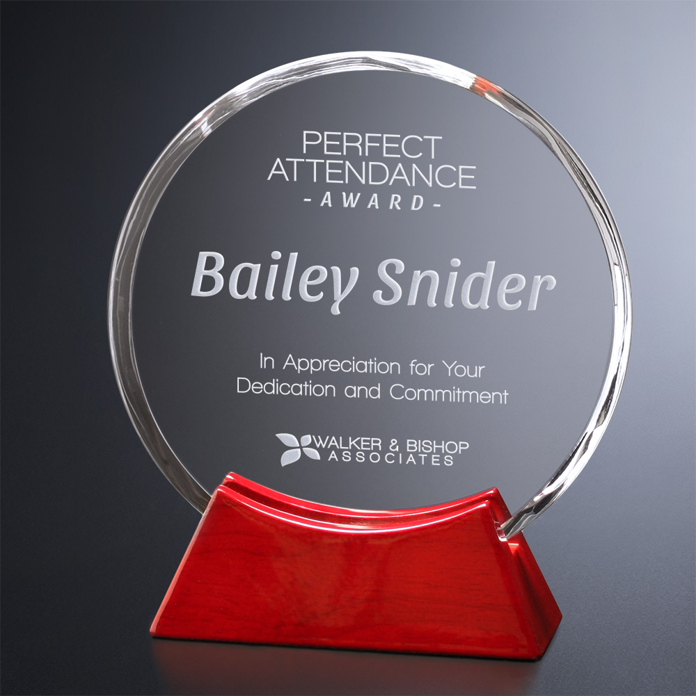 A beautiful piano finish base holds the simple Parkdale Circle. This award will be cherished for years and is the perfect choice for years of service or retirement.