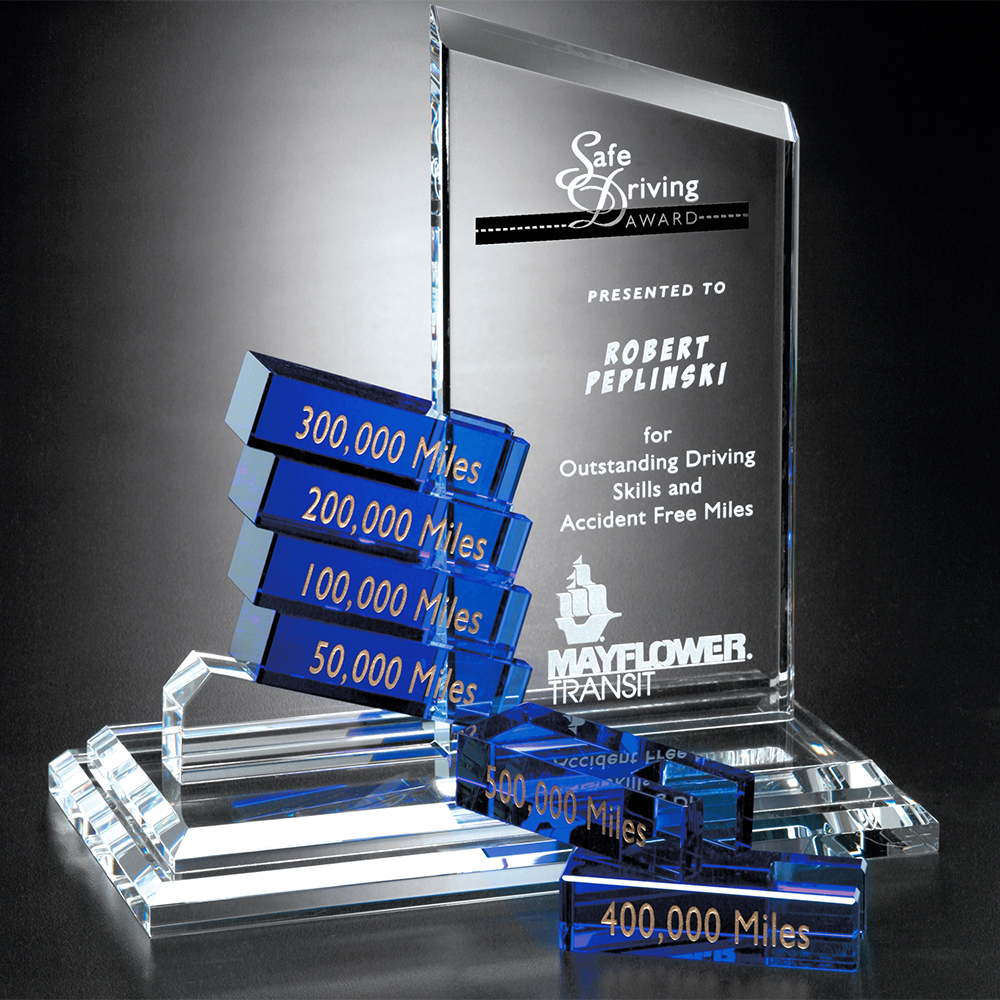 This is the perfect award for the individual driven by quantitative goal setting. Each stacking block symbolizes milestone accomplishments on the way to a greater goal. The peak is made of solid optical crystal and accented by stunning crystal blocks with gold colorfill. This goal-setter award holds up to eight blocks.