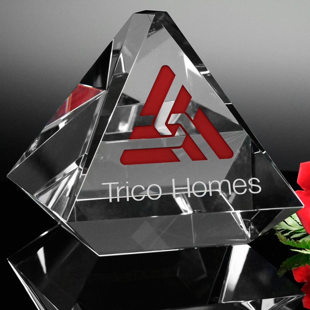 This incredible pyramid is sure to thrill your recipient. The Pellan Pyramid is made of optical crystal and starts with an inverted base that rises outward to form the pyramid. It ends with a blunt peak that adds facets to the sides of this exquisite award. The Pellan Pyramid is available in three sizes.