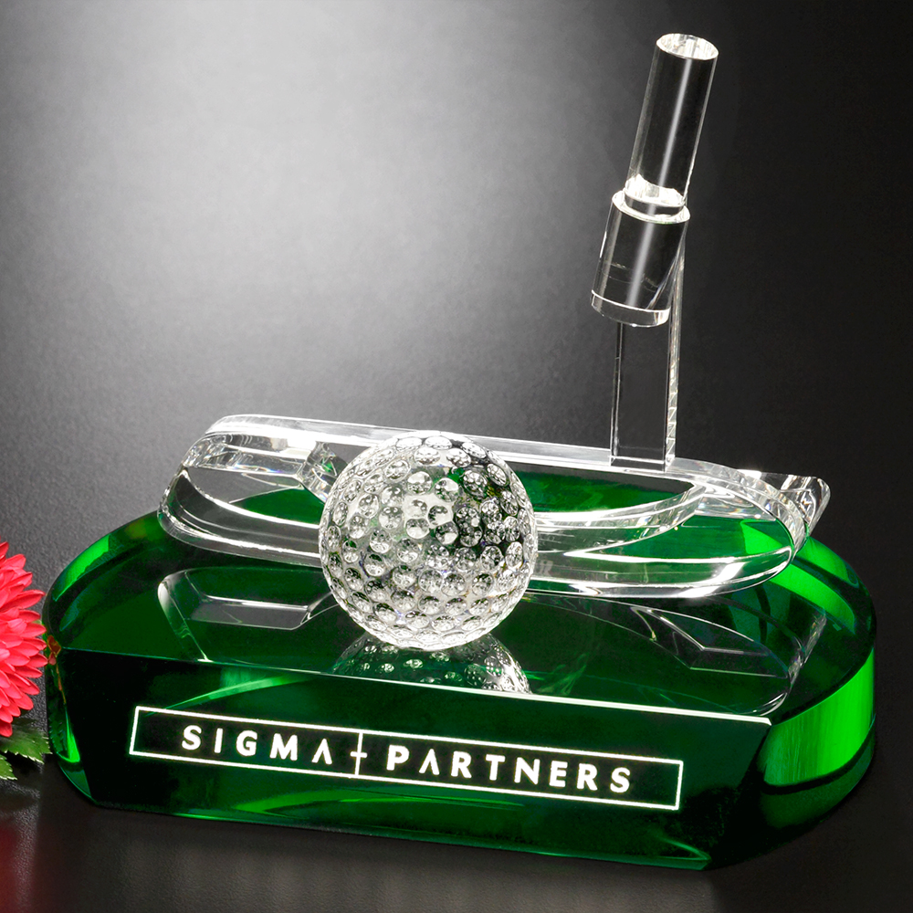 Using a putter to tap a golf ball into the hole is clearly represented in the Putter Award. A perfect choice for a hole-in-one award or best of play!