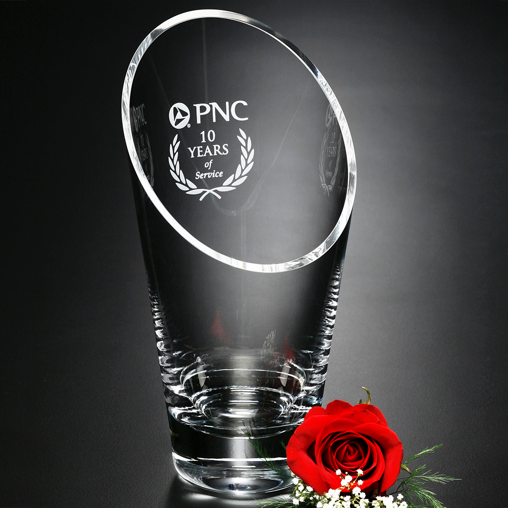 The Westcott Vase is dynamic in design. It has ample area for a personalized message and holds fresh-cut flowers beautifully!