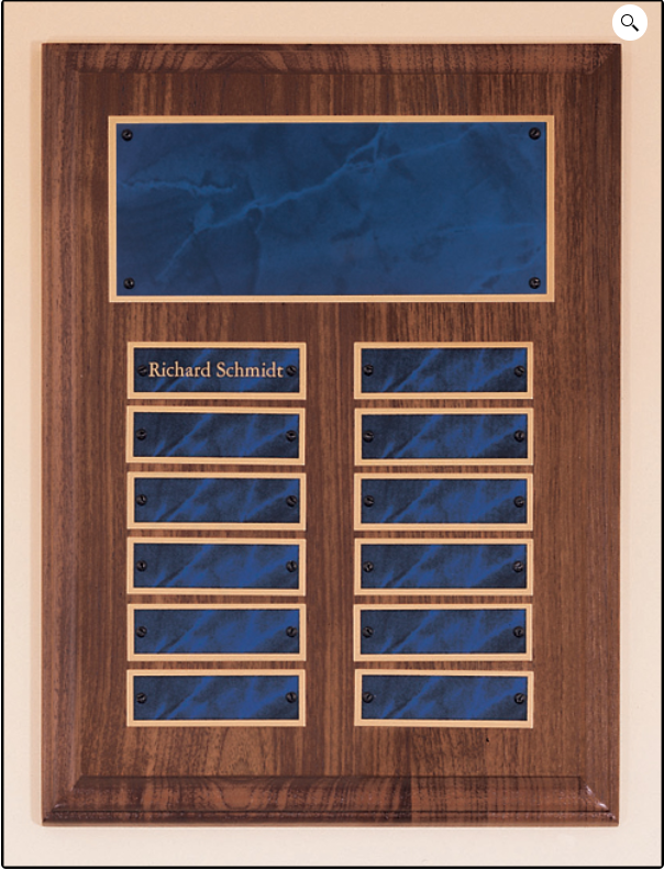 American walnut perpetual plaque with 12 plates, Sapphire Marble Finish