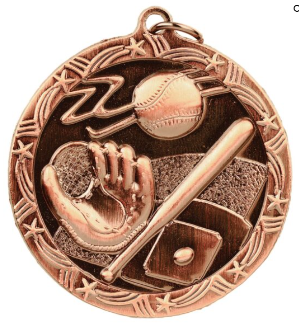 1 3/4″ Antique Bronze Baseball/Softball Shooting Star Medal